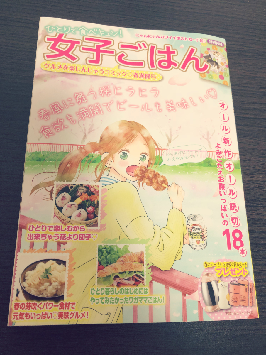 現在発売中の「ひとりで食べキュン! 女子ごはん 春満開号 (主婦の友ヒットシリーズ) 」に茶渡エイジ先生原作お花見ごはん読み切り8p描かせていただきました。