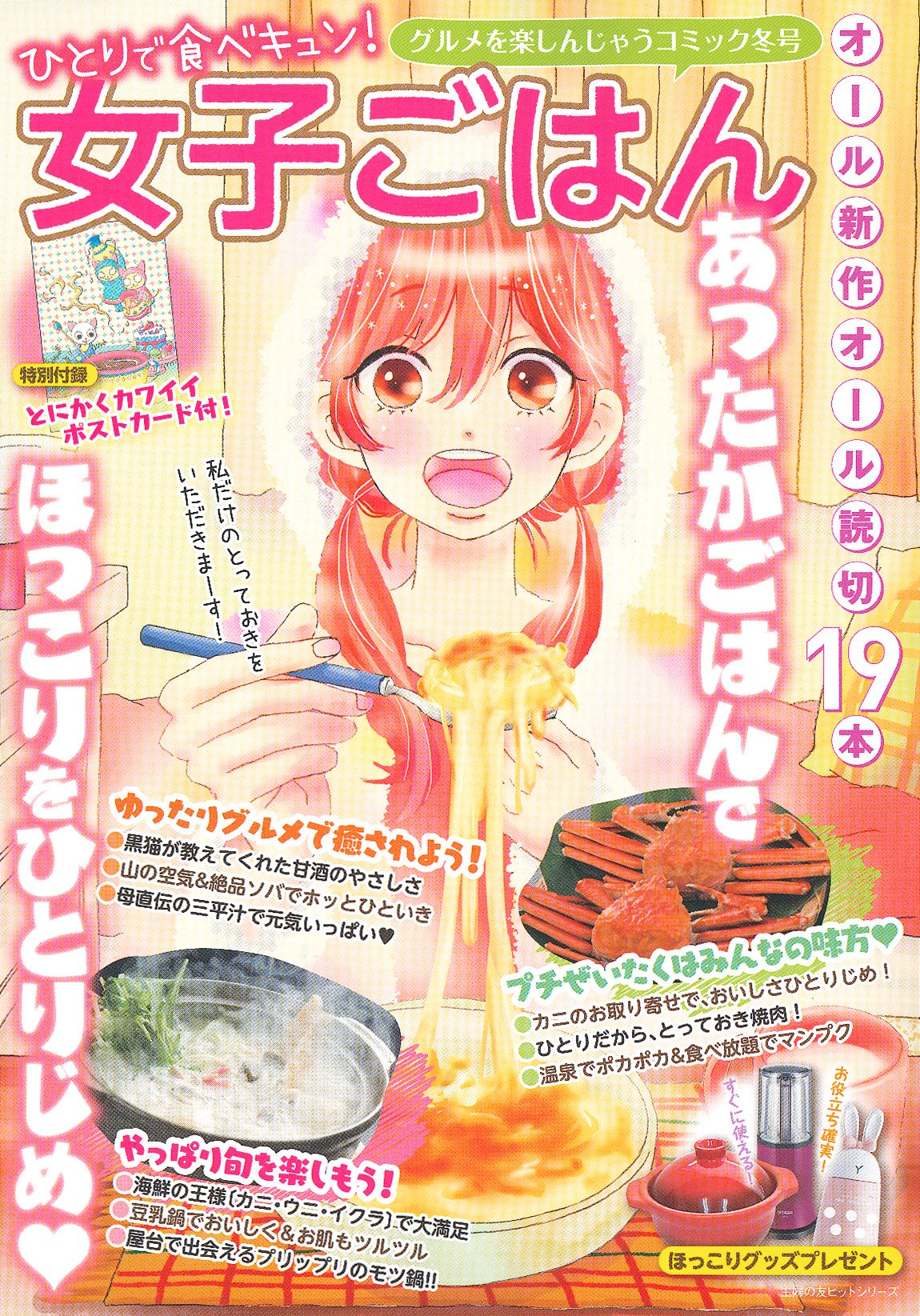 現在発売中の「ひとりで食べキュン! 女子ごはん 初春号 (主婦の友ヒットシリーズ)」に旅ごはん読み切り16p描かせていただきました。
